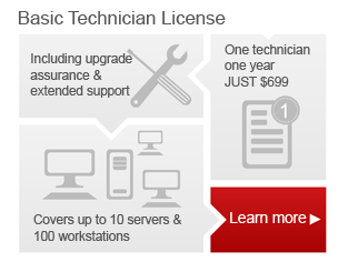 Las licencias de técnico son licencias a término (1, 2 y 3 años están disponibles) y están licenciadas en base al número de sistemas mantenidos, el número de ubicaciones y el número de técnicos. Se basan en la Business Edition en el caso de la Licencia de Técnico Básico y la Edición Premium en el caso de la Licencia de Técnico Estándar. (Haga clic aquí para comparar las ediciones)