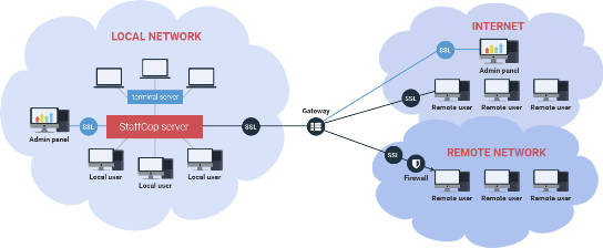 StaffCop Enterprise v. 3.1 se puede conectar a estaciones de trabajo remotas que no forman parte de la red local de su empresa.