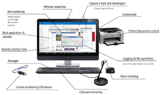 Esta solución le permite controlar todas las actividades de los empleados en la estación de trabajo. Registra todos los eventos e información; Supervisa los canales de transferencia de archivos dentro de su empresa y la transferencia de datos a fuentes externas. Permite analizar la eficiencia de los empleados, determinar los KPI reales de los empleados y proporcionar control y protección de información confidencial, investigar incidentes y revelar a los responsables de la información.